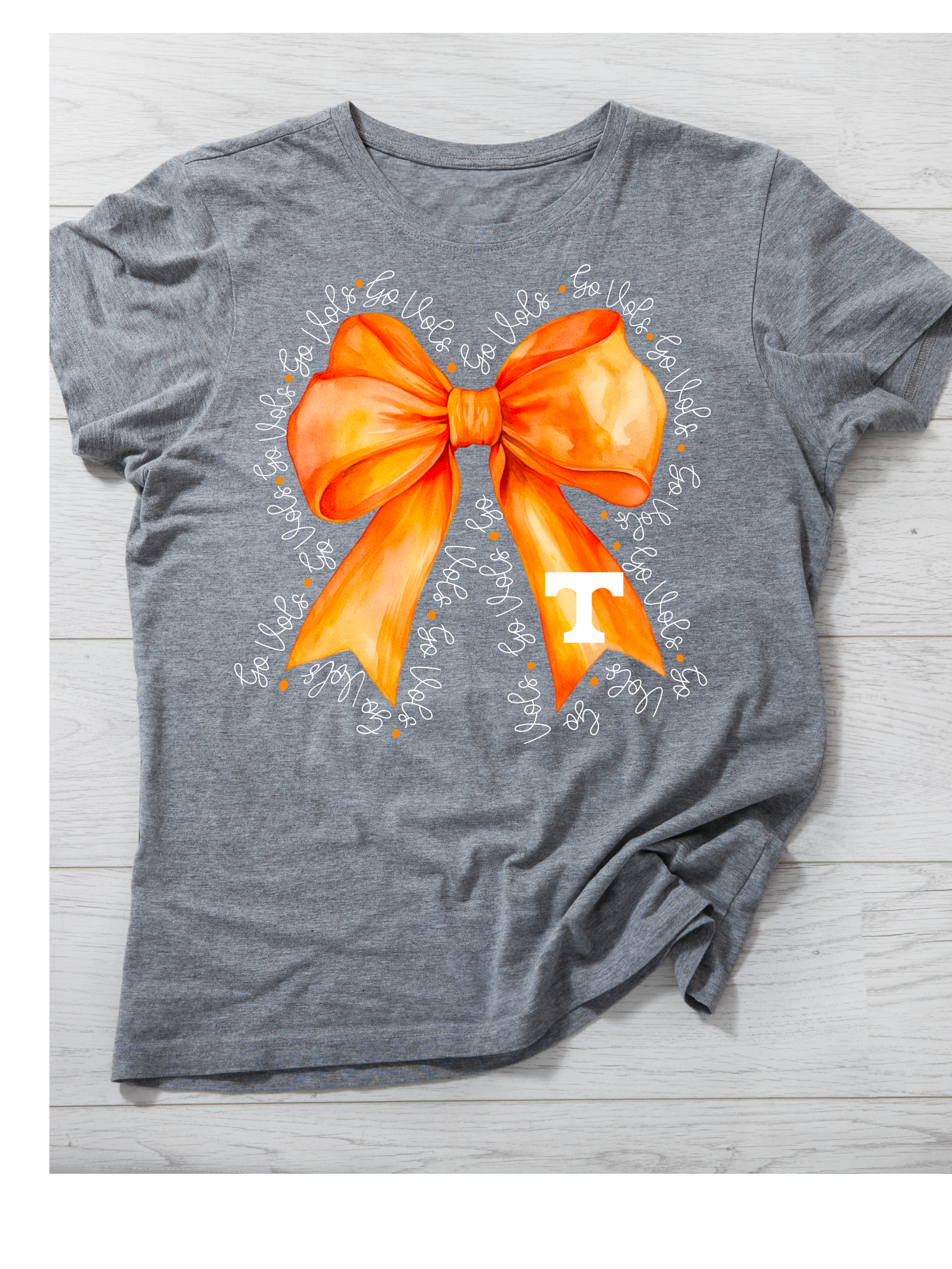 This digital PNG file features an Orange bow design with a cute go vols in black or white font surrounding the bow, perfectly suited for Tennessee volunteer projects. Ideal for creating standout graphics, apparel, or promotional material. Easy to use in various design software, this file delivers crisp, high-quality imagery every time.